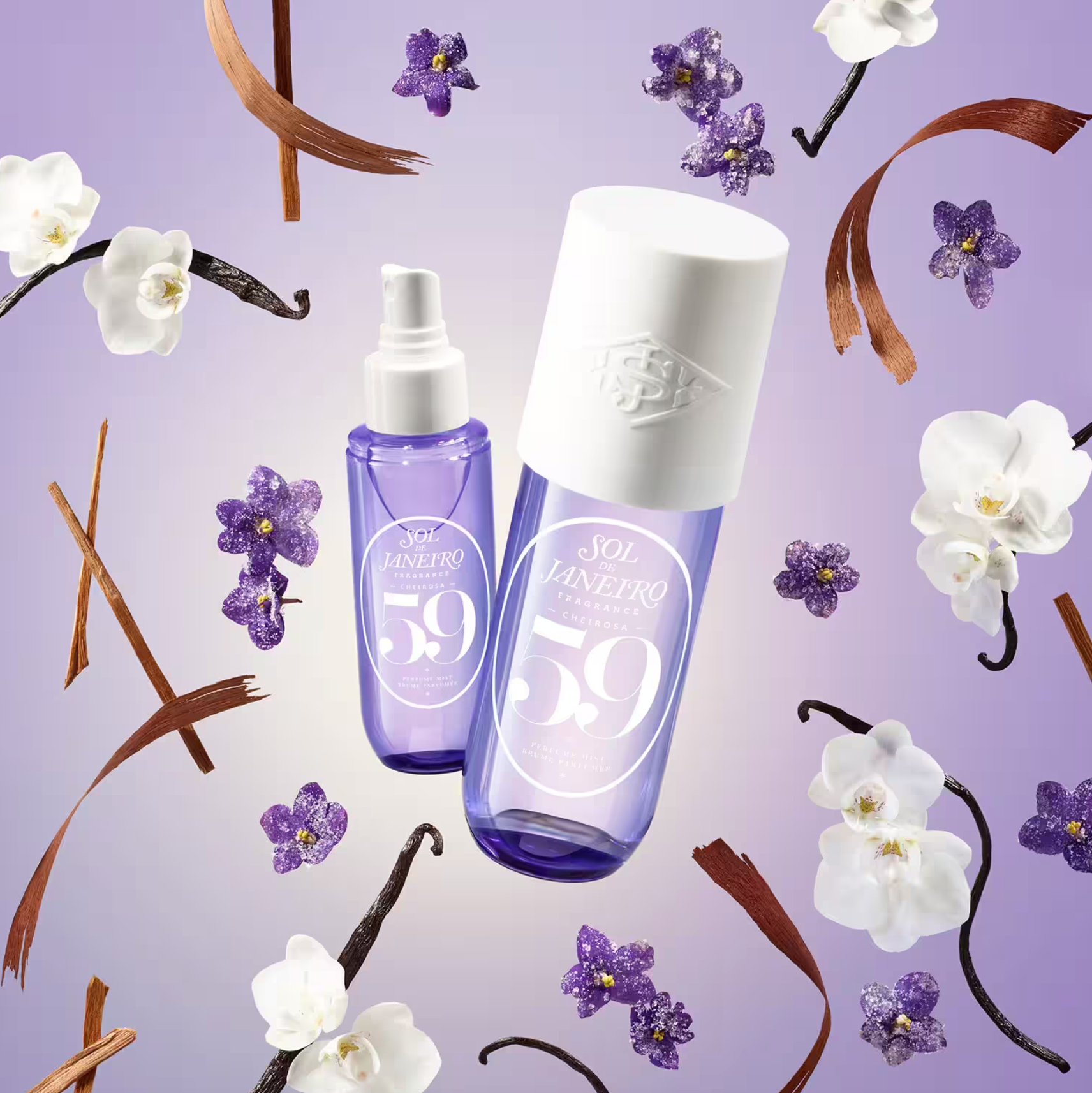 Το Brazilian Crush Cheirosa 59 Body & Hair Fragrance Mist της Sol de Janeiro σας προσκαλεί να μοιραστείτε τη ζεστασιά ενός ηλιοβασιλέματος με αναζωογονητικές νότες από βανίλια ορχιδέας, ζαχαρωμένη βιολέτα και απαλό σανδαλόξυλο. Αυτό το αρωματικό σπρέι για τα μαλλιά και το σώμα προσφέρει μια ζεστή και γλυκιά αίσθηση, με την ένταση των λουλουδιών και των ξυλωδών νότες να δημιουργούν μια ακαταμάχητη και διαρκή αίσθηση ευφορίας.